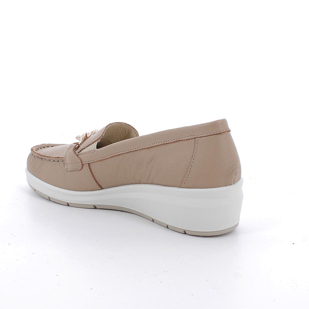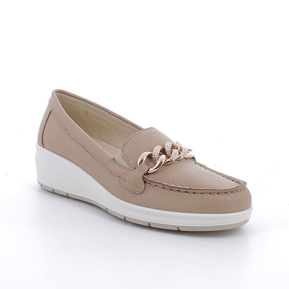 Home / Mocassini taupe con zeppa in pelle da donna