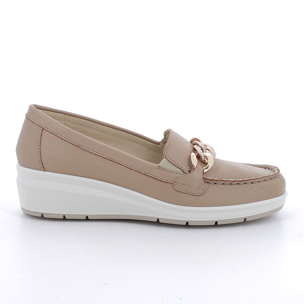 Mocassini taupe con zeppa in pelle da donna