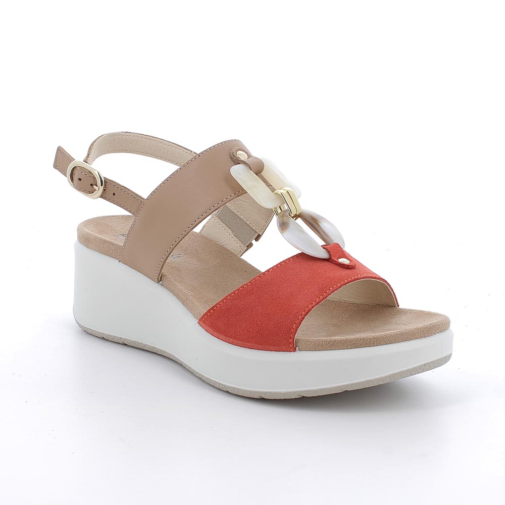 Home / Sandali arancio-corda con zeppa in pelle da donna