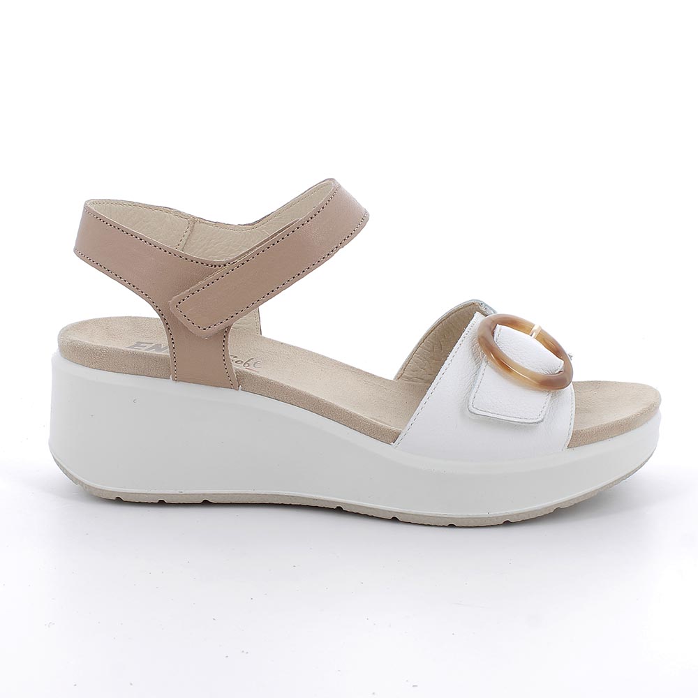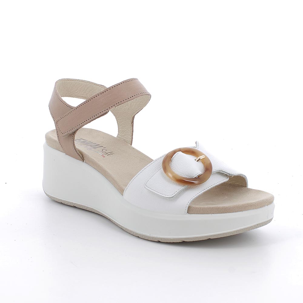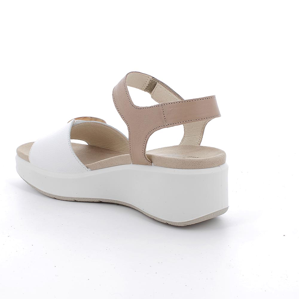 Sandali bianco-corda con zeppa in pelle da donna